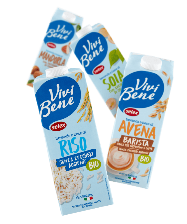 Una linea completa che comprende tante opzioni per soddisfare diversi gusti ed esigenze. Al latte ad alta digeribilità si affianca una vasta offerta di bevande vegetali di qualità, ricche di principi nutritivi. A colazione o a merenda puoi scegliere quindi tra diversi sostituti del latte, tutti gustosi, a base materie prime biologiche (soia, avena o mandorle) e disponibili sia con zucchero di canna, sia nelle versioni senza zuccheri aggiunti o ad alto contenuto proteico. E per chi desidera un dissetante sorso di freschezza ricco di vitamine, Vivi Bene Selex offre anche l'AC Drink Agrumi.