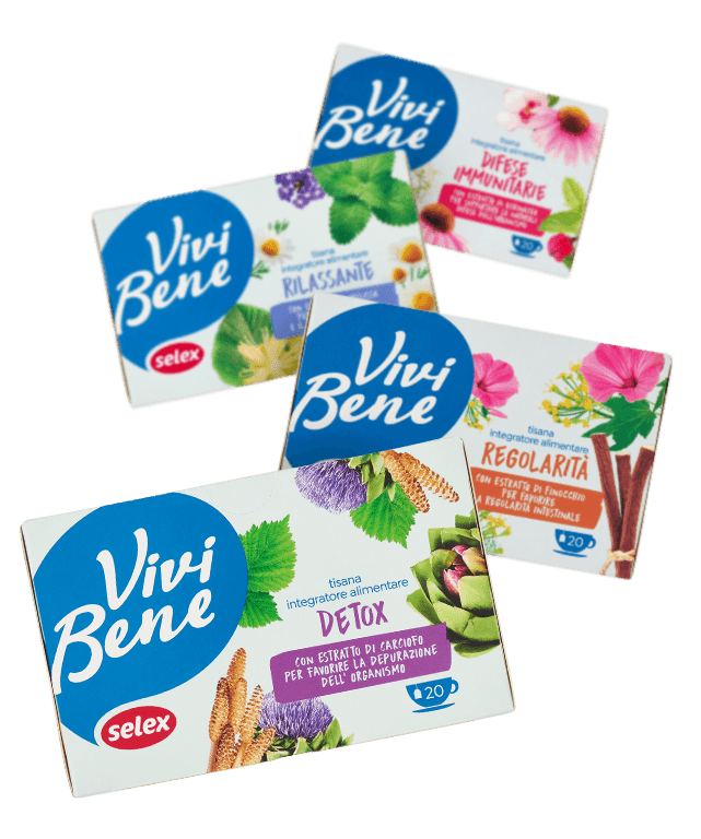 È sempre il momento concederti un po’ di tranquillità e di benessere e, grazie alle tisane Vivi Bene Selex, puoi vivere questo momento ogni giorno. Gli infusi di questa linea sono tutti in pratiche bustine e le proprietà delle erbe che le compongono sono evidenziate chiaramente sulle confezioni, insieme al loro principio attivo più importante.